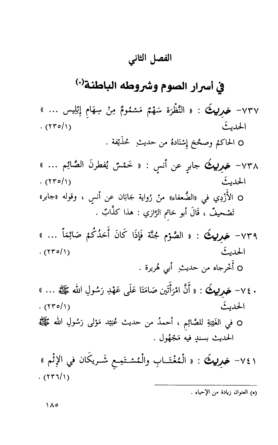 الفصل الثاني في أسرار الصوم وشروطه الباطنه