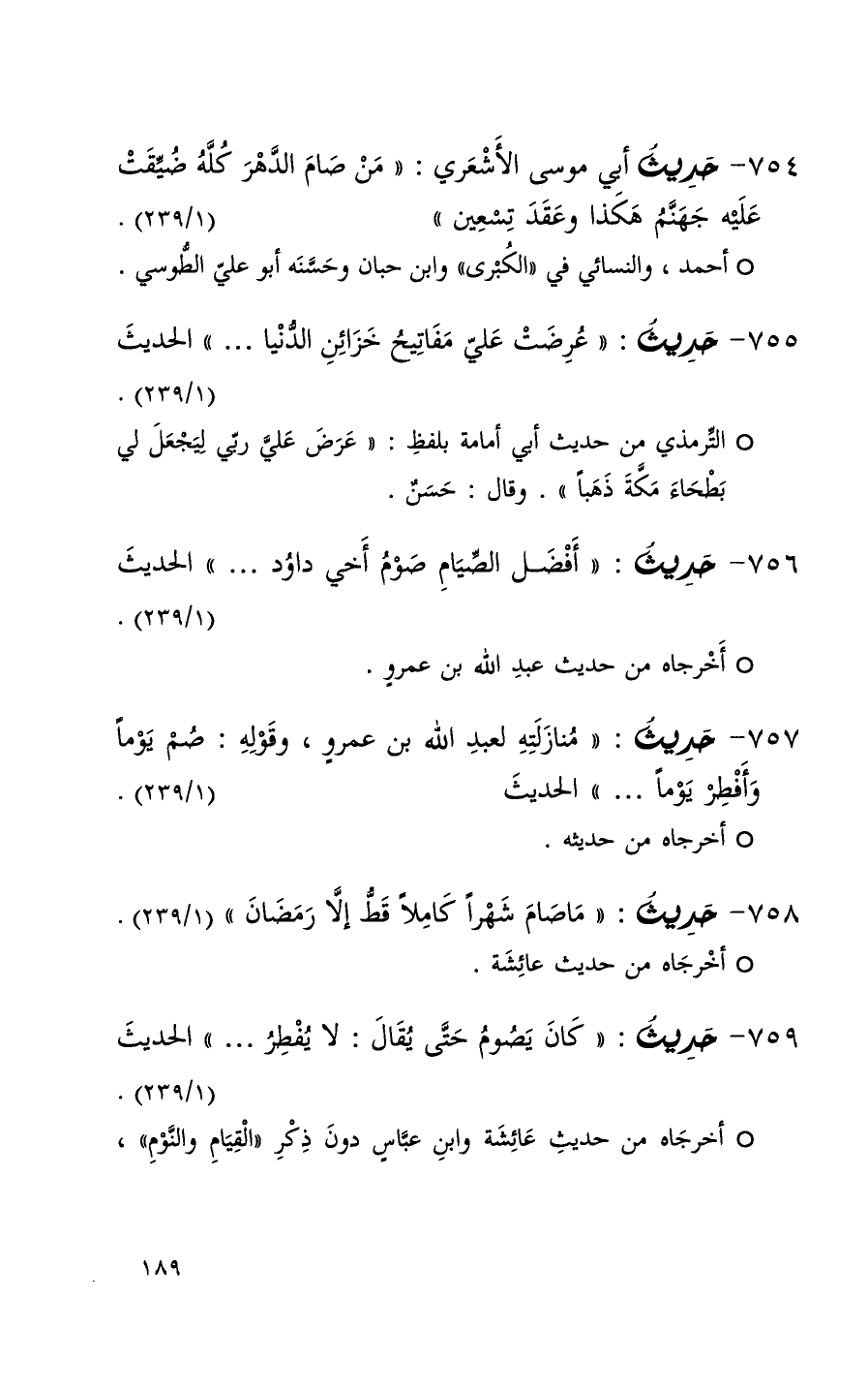 754 حديث أبي موسى الأشعري ( من صام الدهر كله ضيقت عليه جهنم هكذا وعقد تسعين ) ( 1 / 239 ) (1)