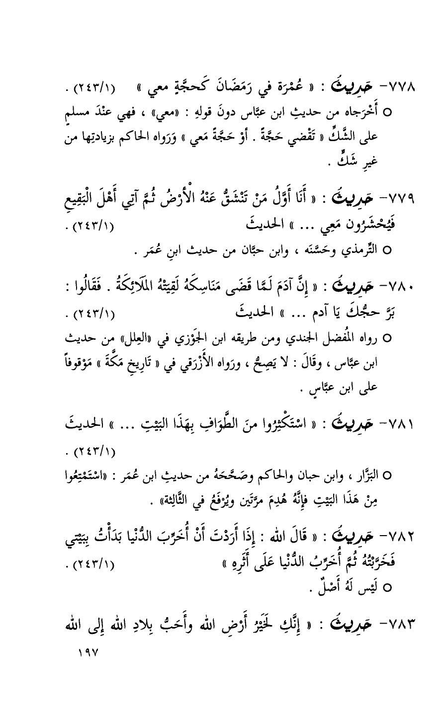 778 حديث ( عمرة في رمضان كحجة معي ) ( 1 / 243 ) (1)