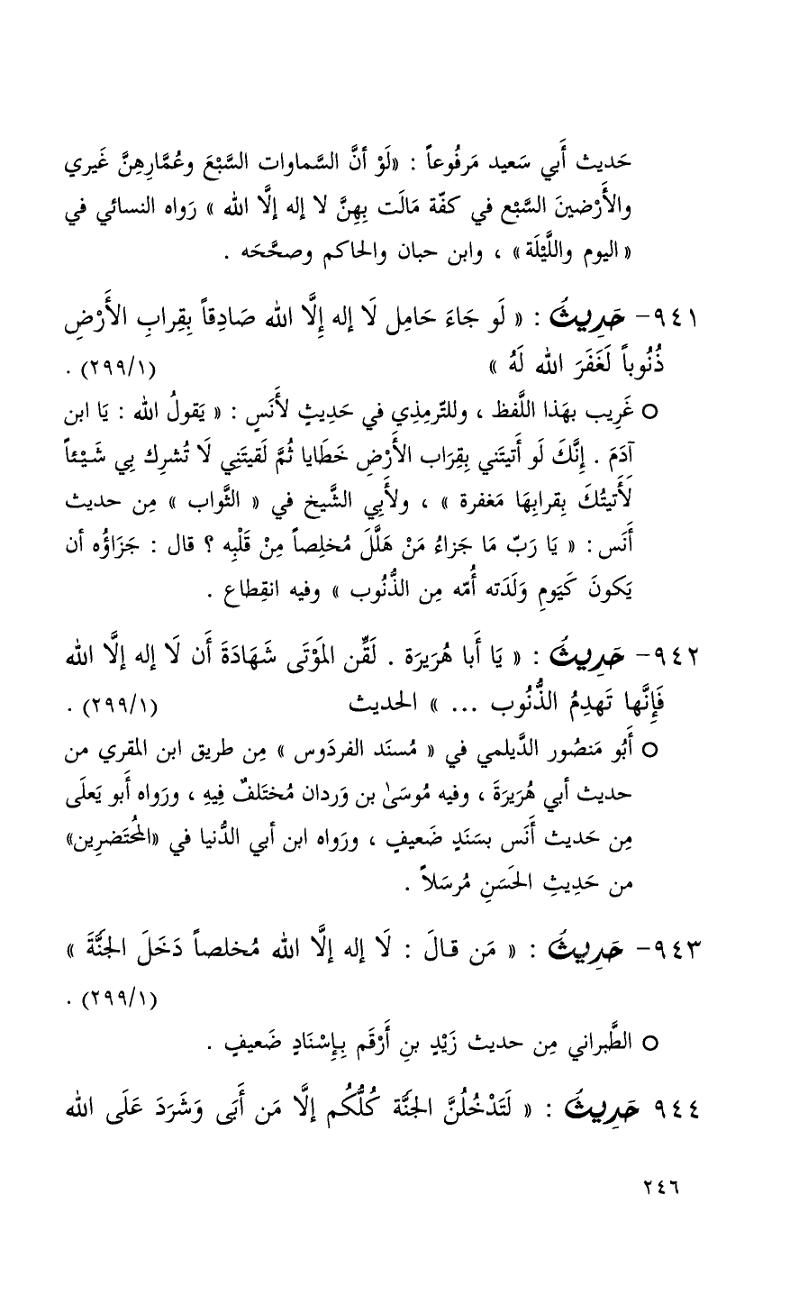 943 حديث ( من قال لا إله إلا الله مخلصاً دخل الجنة ) ( 1 / 299 ) + الطبراني من حديث زيد بن أرقم بإسناد ضعيف +