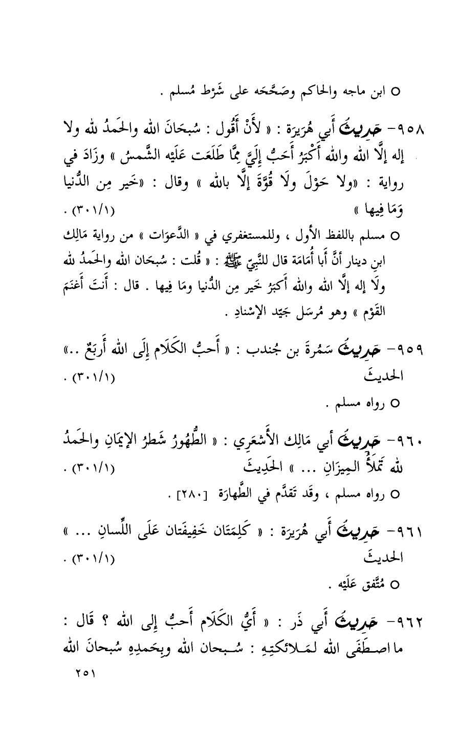 962 حديث أبي ذر ( أي الكلام أحب إلى الله قال ما اصطفى الله لملائكته سبحان الله و بحمده سبحان الله