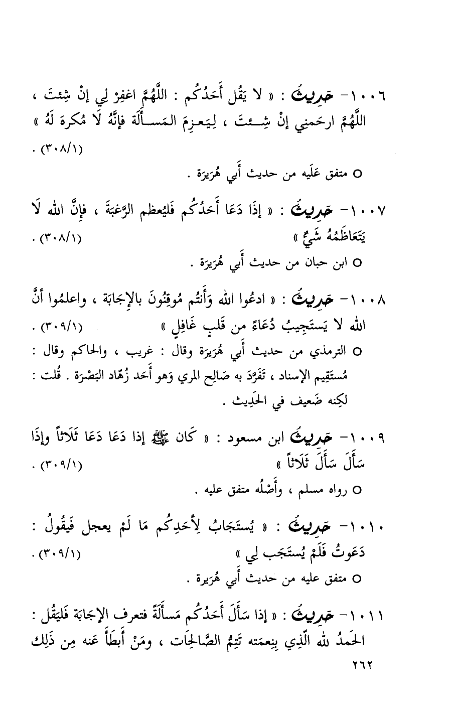 1010 حديث ( يستجاب لأحدكم ما لم يعجل فيقول دعوت فلم يستجب لي ) ( 1 / 309 ) (1)