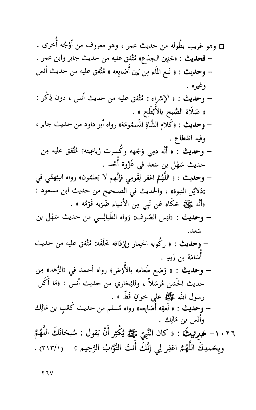 1026 حديث ( كان النبي يكثر أن يقول سبحانك اللهم وبحمدك اللهم اغفر لي إنك أنت التواب الرحيم ) ( 1 / 313