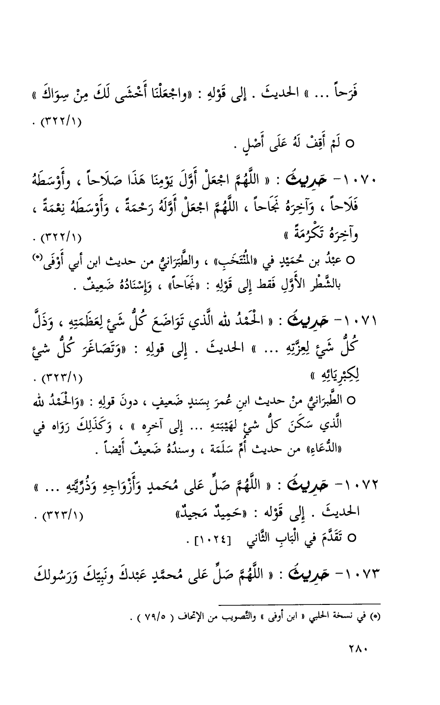1072 حديث ( اللهم صل على محمد وأزواجه وذريته . . . ) الحديث إلى قوله ( حميد مجيد ) ( 1 / 323 ) + تقدم في الباب الثاني 1024