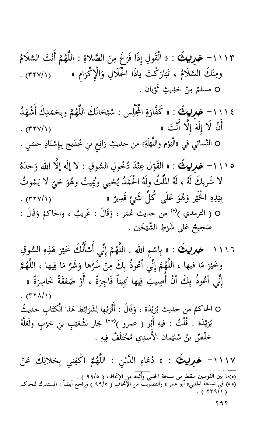 1113 حديث ( القول إذا فرغ من الصلاة اللهم أنت السلام ومنك السلام تباركت يا ذا الجلال والإكرام ) ( 1 / 327 ) (1)