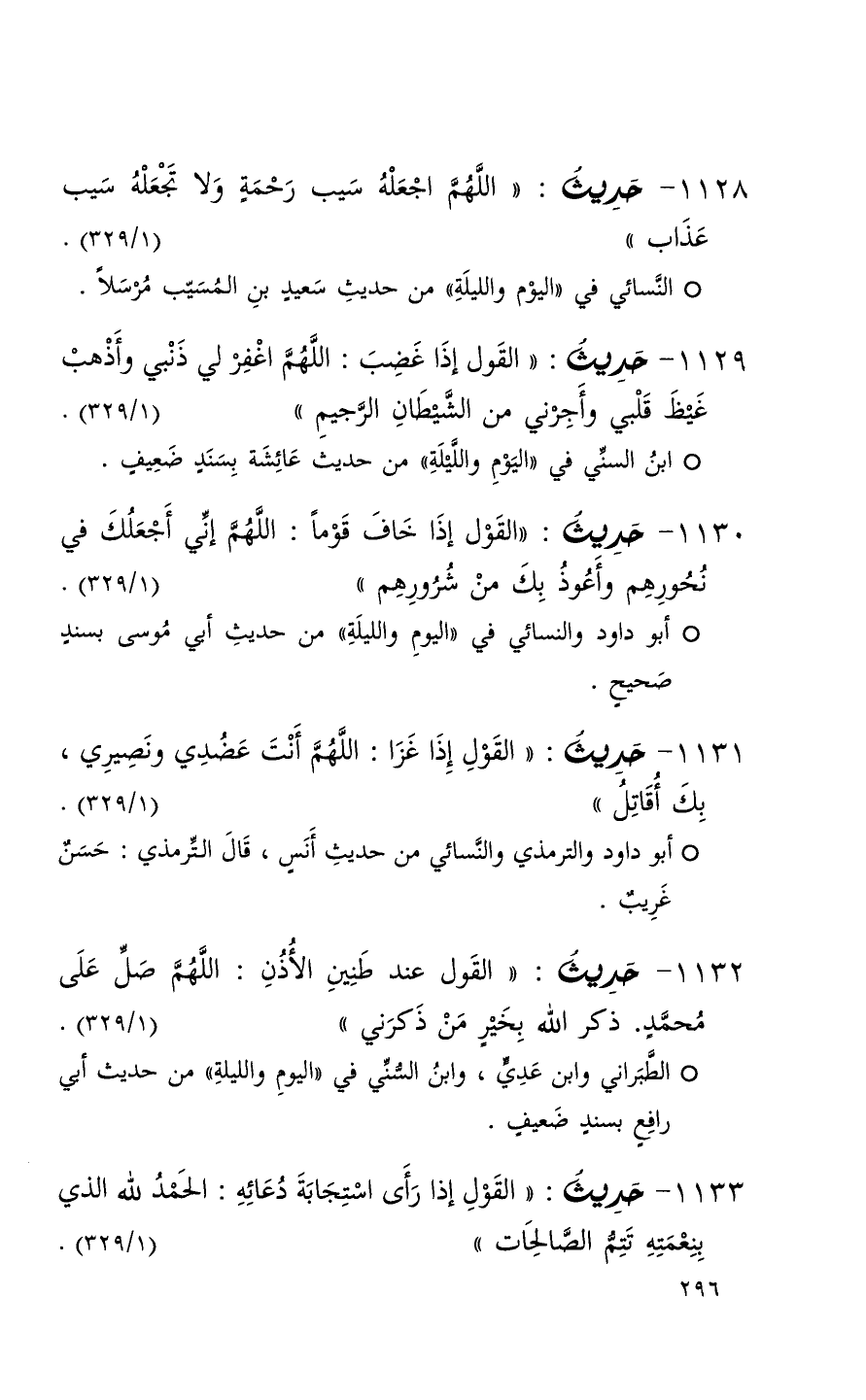 1133 حديث ( القول إذا رأى استجابة دعائه الحمد لله الذي بنعمته تتم الصالحات ) ( 1 / 329 )