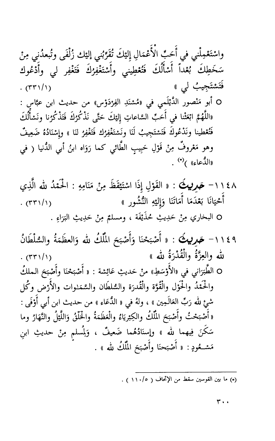 1148 حديث ( القول إذا استيقظ من منامه الحمد لله الذي أحيانا بعدما أماتنا وإليه النشور ) ( 1 / 331 ) + البخاري من حديث حذيفة ومسلم من حديث البراء +