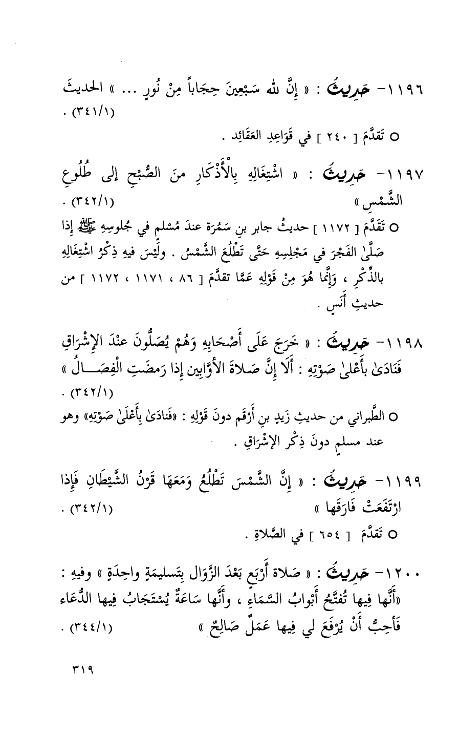 1196 حديث ( إن لله سبعين حجاباً من نور 000 ) الحديث ( 1 / 341 ) (1)