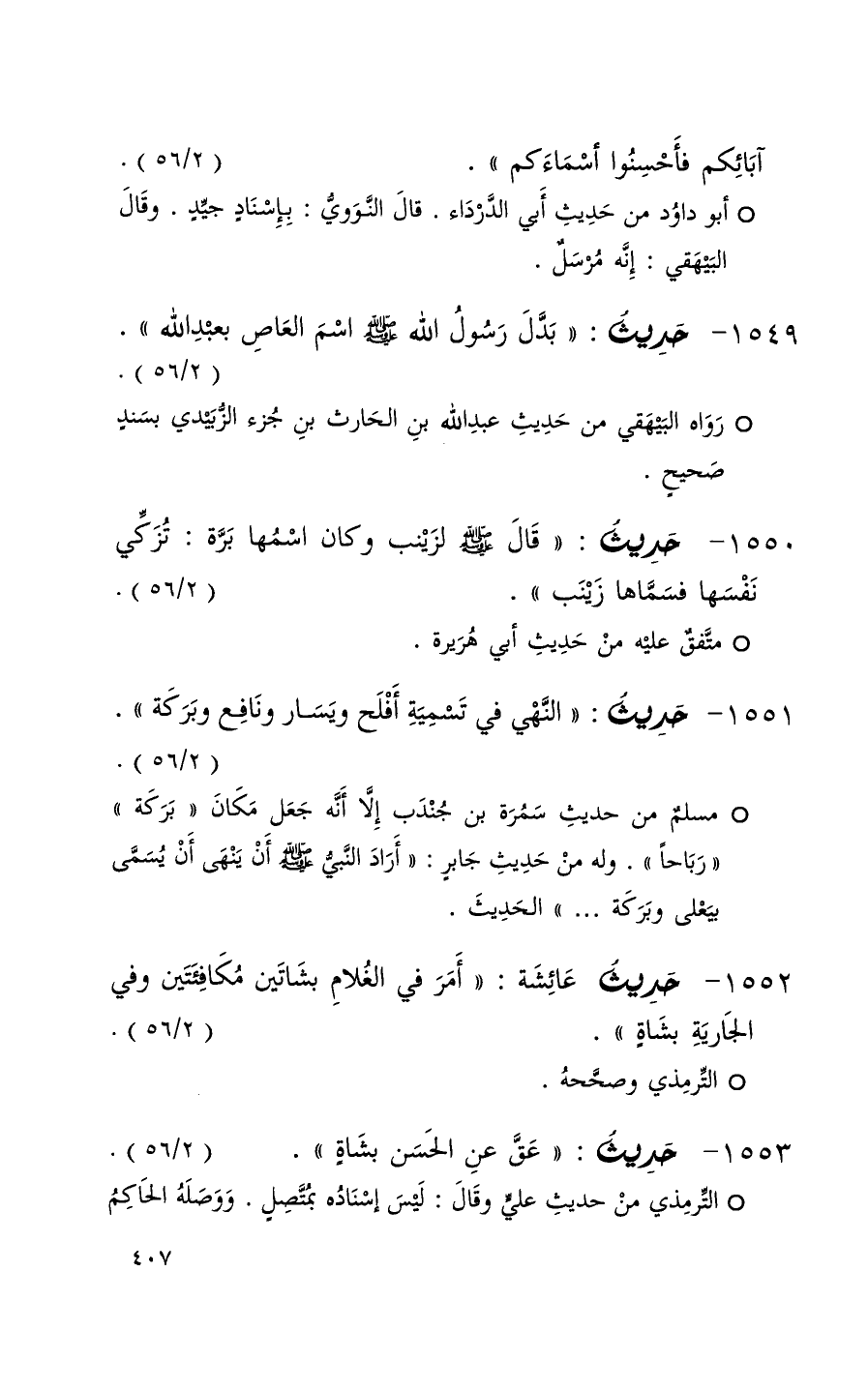 1550 حديث ( قال لزينب وكان اسمها بره تزكي نفسها فسماها زينب ) ( 2 / 56 ) + متفق عليه من حديث أبي هريرة +