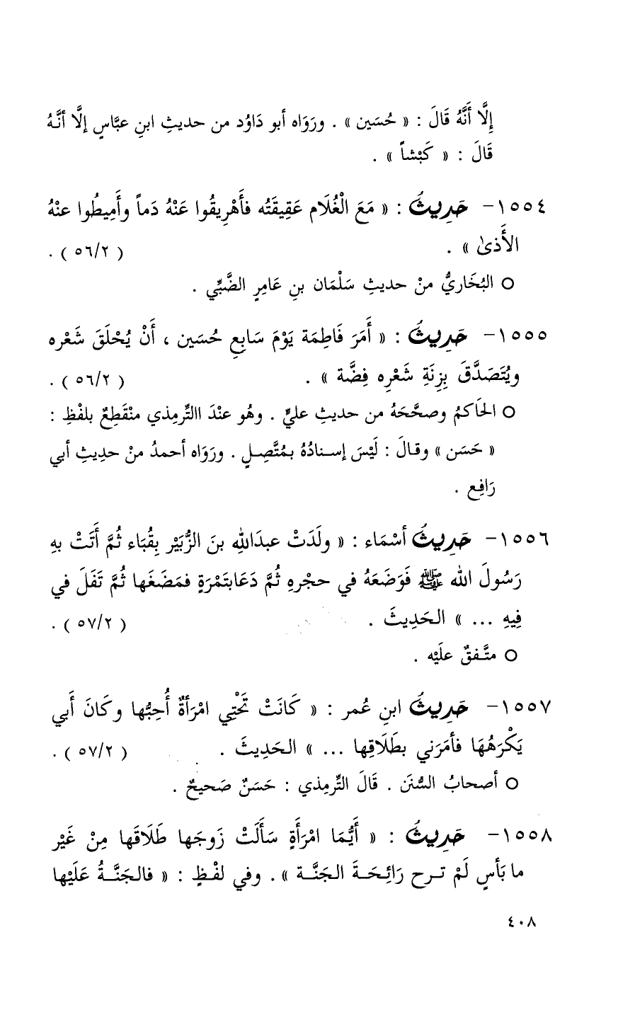 1554 حديث ( مع الإلام عقيقته فأهريقوا عنه دماً وأميطوا عنه الأذى ) ( 2 / 56 )
