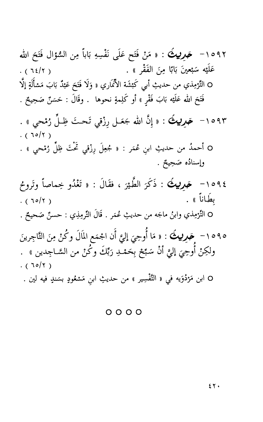 1592 حديث ( من فتح على نفسه باباً من السؤال فتح الله عليه سبعين باباً من الفقر ) ( 2 / 64 ) (1)
