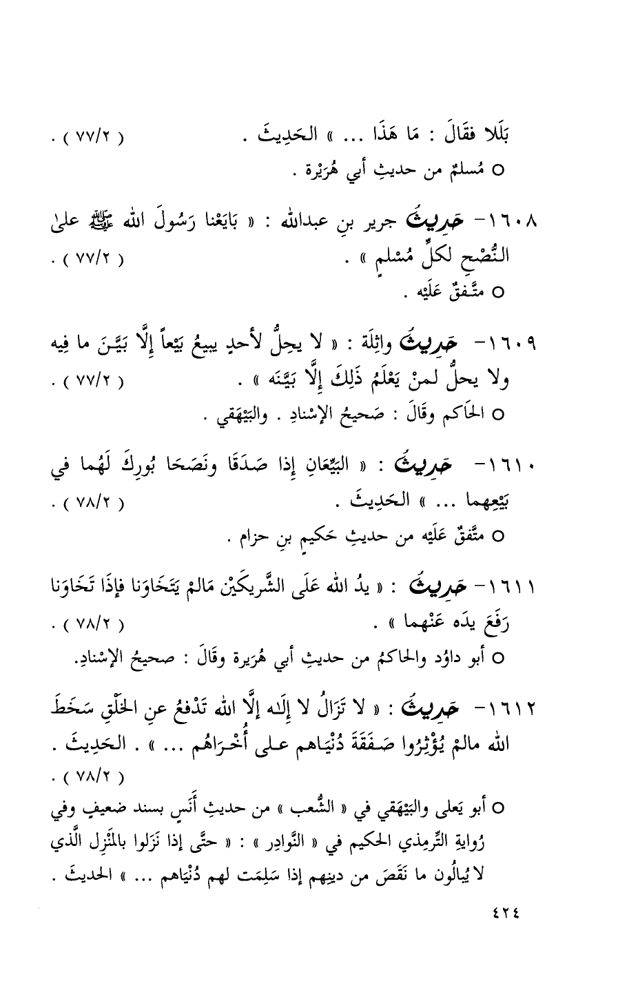 1610 حديث ( البيعان إذا صدقاً ونصحاً بورك لهما في بيعهما 000 ) الحديث ( 2 / 78 ) + متفق عليه من حديث حكيم بن حزام +