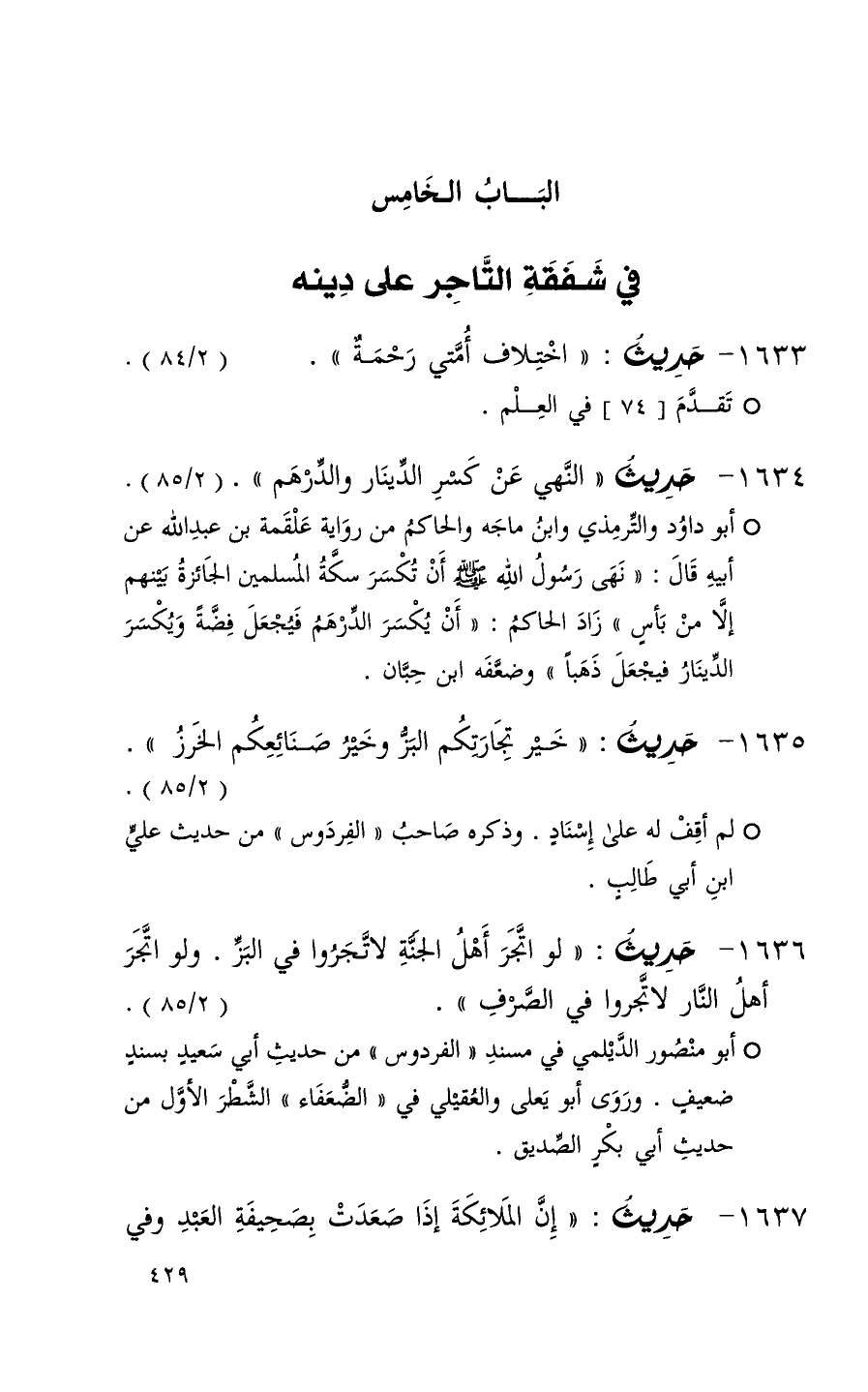 صلى الله عليه وسلم الباب الخامس صلى الله عليه وسلم في شفقة التاجر على دينه