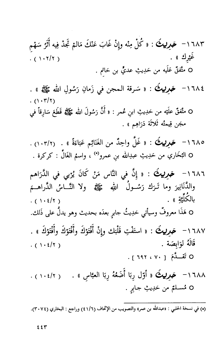 1687 حديث ( استفت قلبك وإن أفتوك وأفتوك وأفتوك ) قاله لوابصة ( 2 / 104 ) + تقدم 70 692 +