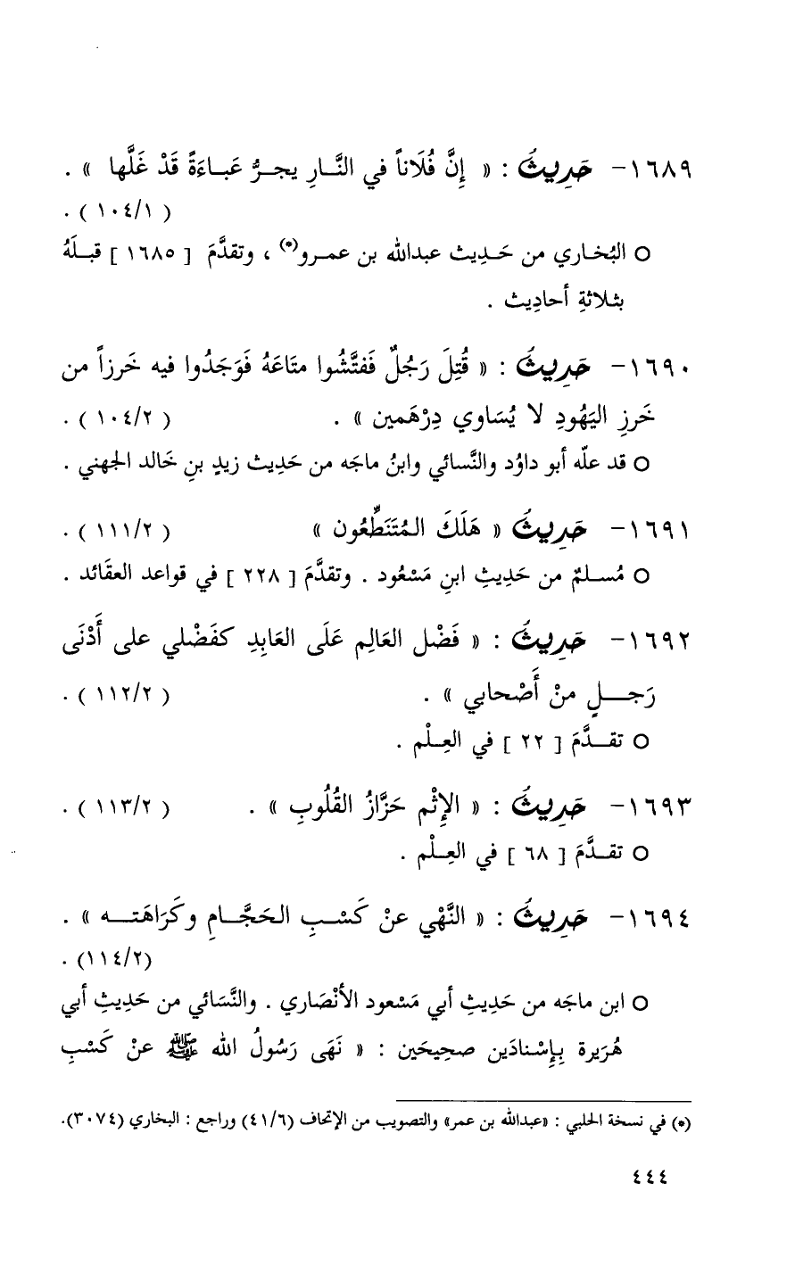 1691 حديث ( هلك المتنطعون ) ( 2 / 111 ) + مسلم من حديث ابن مسعود وتقدم 228 في قواعد العائد +