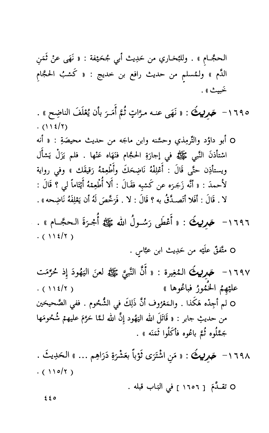 1696 حديث ( أعطى رسول الله أجرة الحجام ) ( 2 / 141 ) + متفق عليه من حديث ابن عباس +