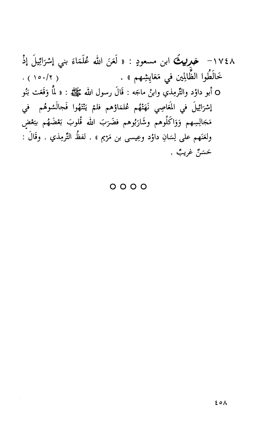 1748 حديث ابن مسعود ( لعن الله علماء بني إسرائيل إذ خالطوا الظالمين في معايشهم ) ( 2 / 150 ) (1)