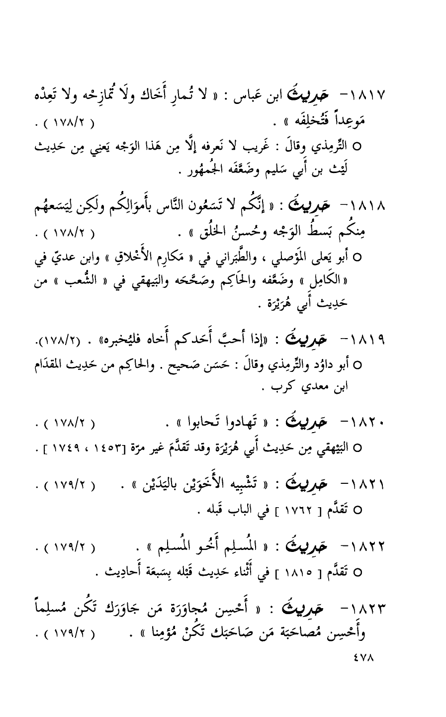 1817 حديث ابن عبس ( لا تمار أخاك ولا تمازحه ولا تعده موعداً فتخلفه ) ( 2 / 178 ) (1)