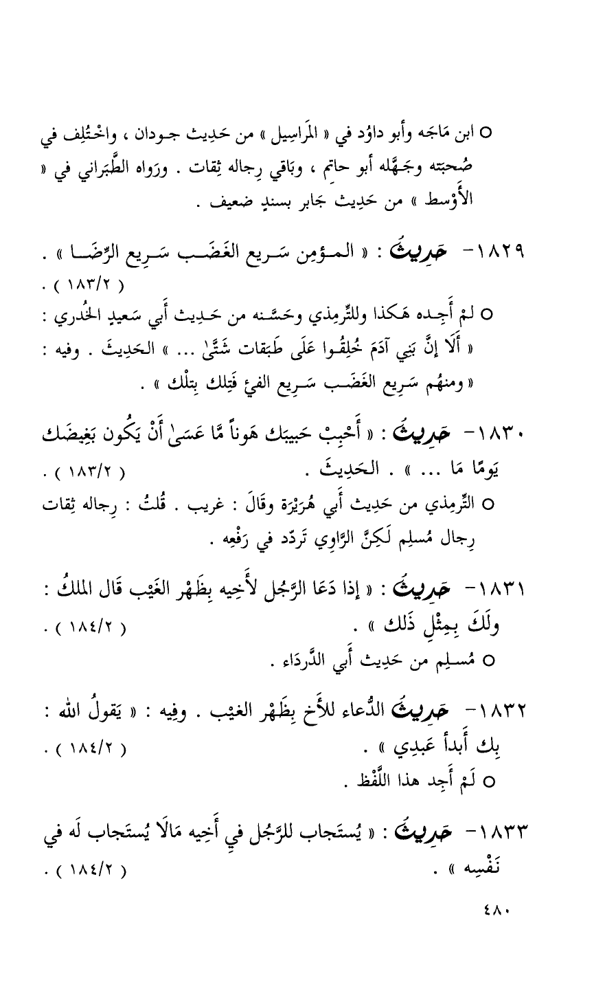 1833 حديث ( يستجاب للرجل في أخيه مالا يستجاب له في نفسه ) ( 2 / 184 )