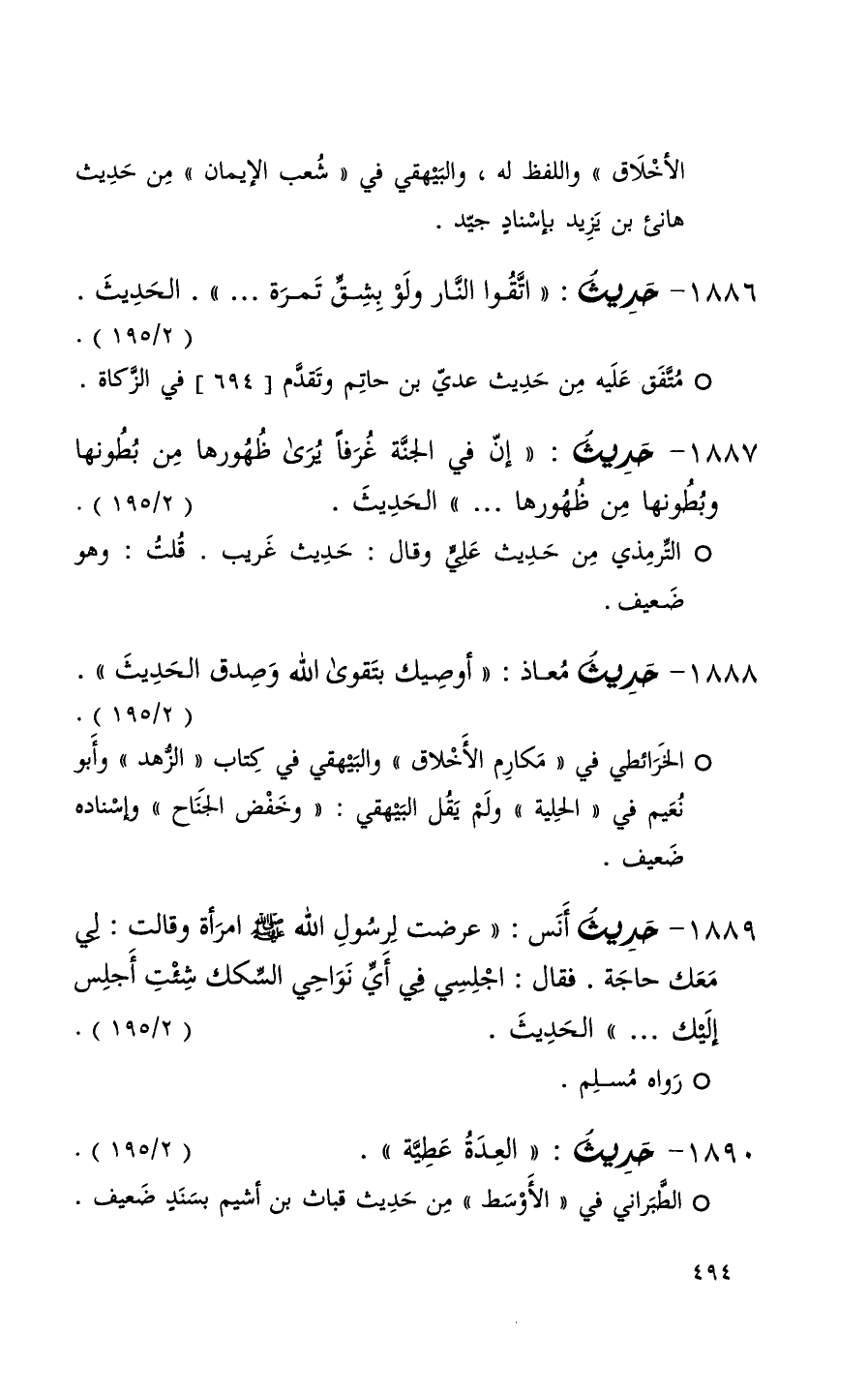 1886 حديث ( اتقوا النار ولو بشق تمرة . . . ) الحديث ( 2 / 195 )