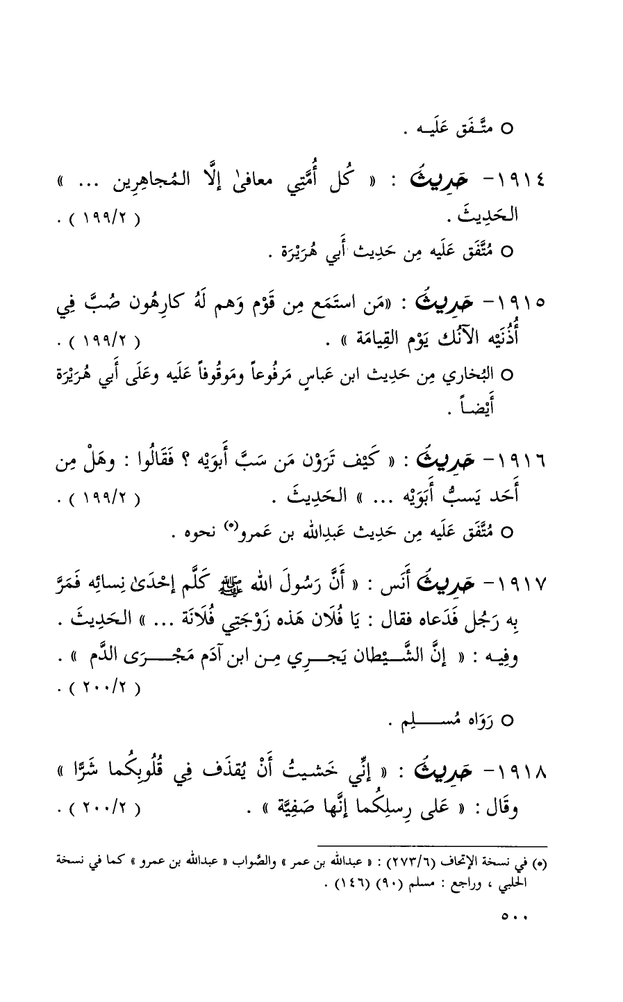 1918 حديث ( إني خشيت أن يقذف في قلوبكما شراً ) وقال ( على رسلكما أنها صفية ) ( 2 / 200 )