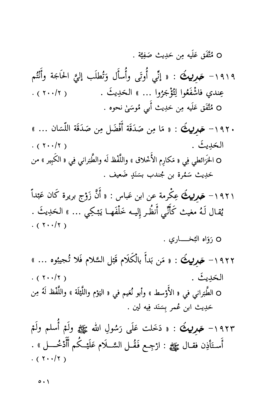1923 حديث ( دخلت على رسول الله ولم أسلم ولم أستأذن فقال ارجع فقل السلام عليكم أأدخل ) ( 2 / 200 )