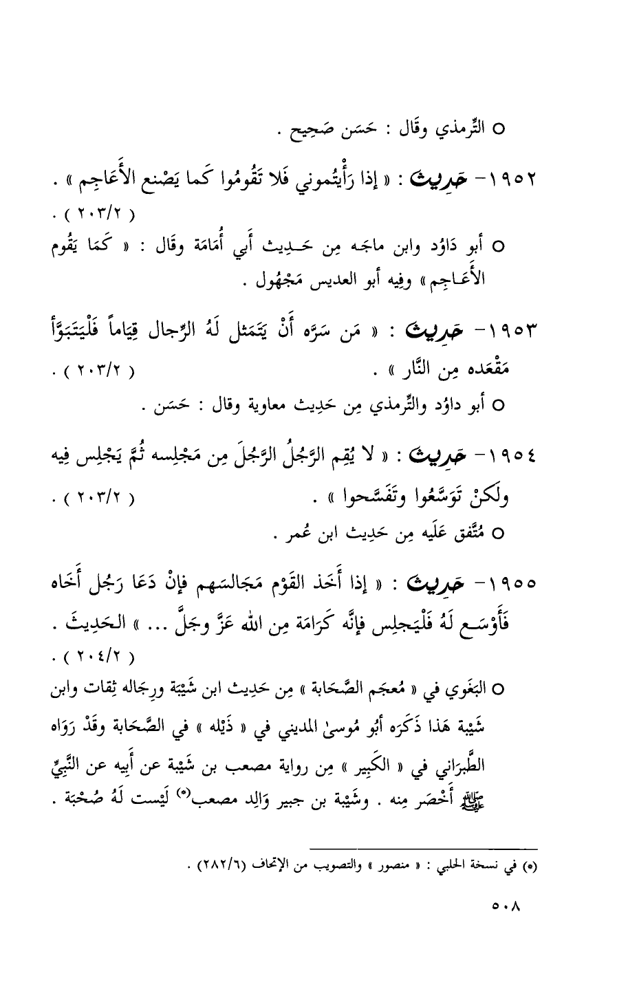 1953 حديث ( من سره أن يتمثل له الرجال قياماً فليتبوأ مقعده من النار ) ( 2 / 203 ) + أبو داود والترمذي من حديث معاوية وقال حسن +
