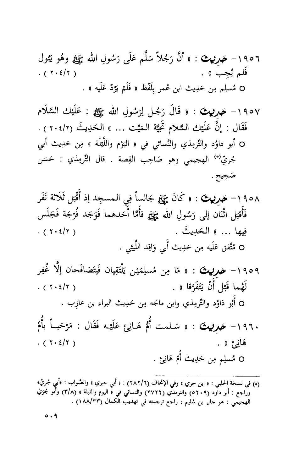1956 حديث ( أن رجلاً سلم على رسول الله وهو يبول فلم يجب ) ( 2 / 204 ) (1)