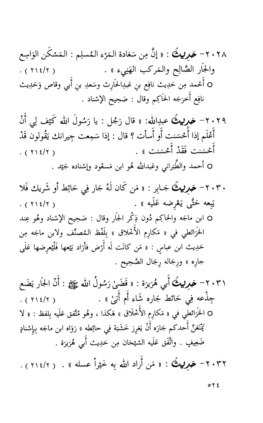2028 حديث ( إن من سعادة المرء المسلم المسكن الواسع والجار الصالح والمركب الهنيء ) ( 2 / 214 ) (1)