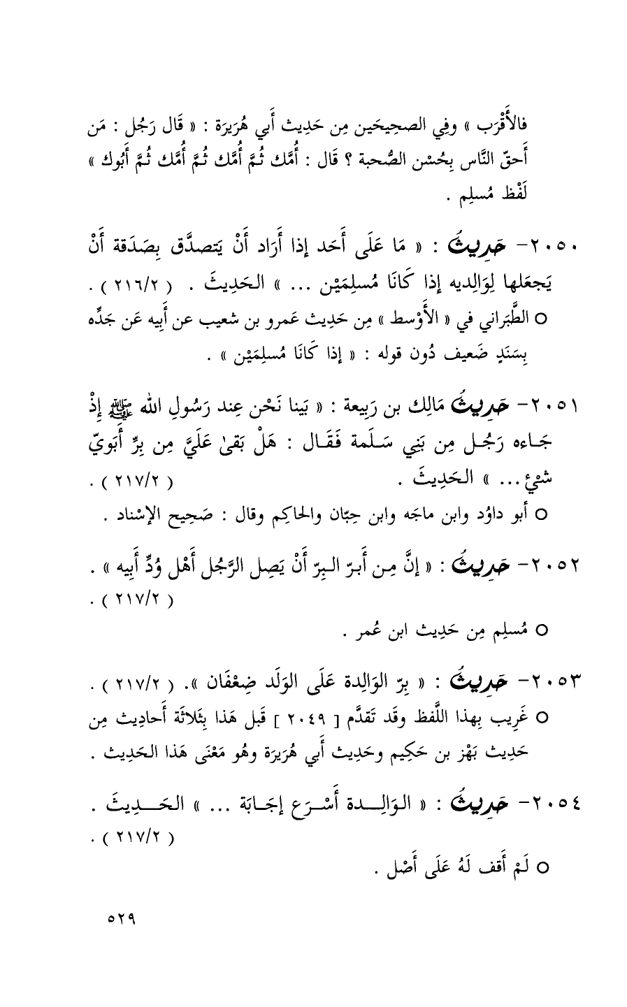 2050 حديث ( ما على أحد إذا أراد أن يتصدق بصدقة ان يجعلها لوالديه إذا كان مسلمين . . . ) الحديث ( 2 / 216 )