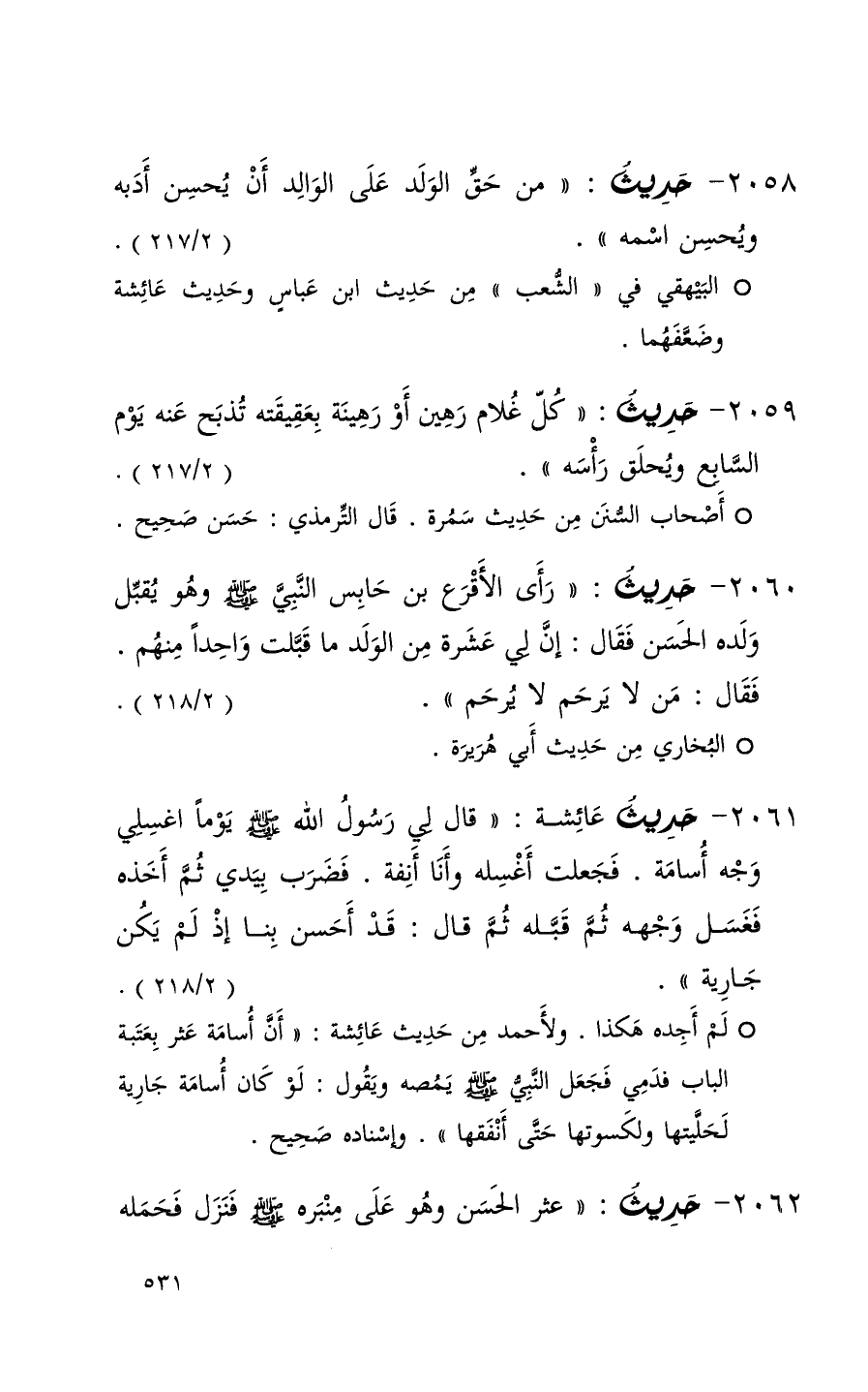 2058 حديث ( من حق الولد على الوالد أن يحسن أدبه ويحسن اسمه ) ( 2 / 217 ) (1)