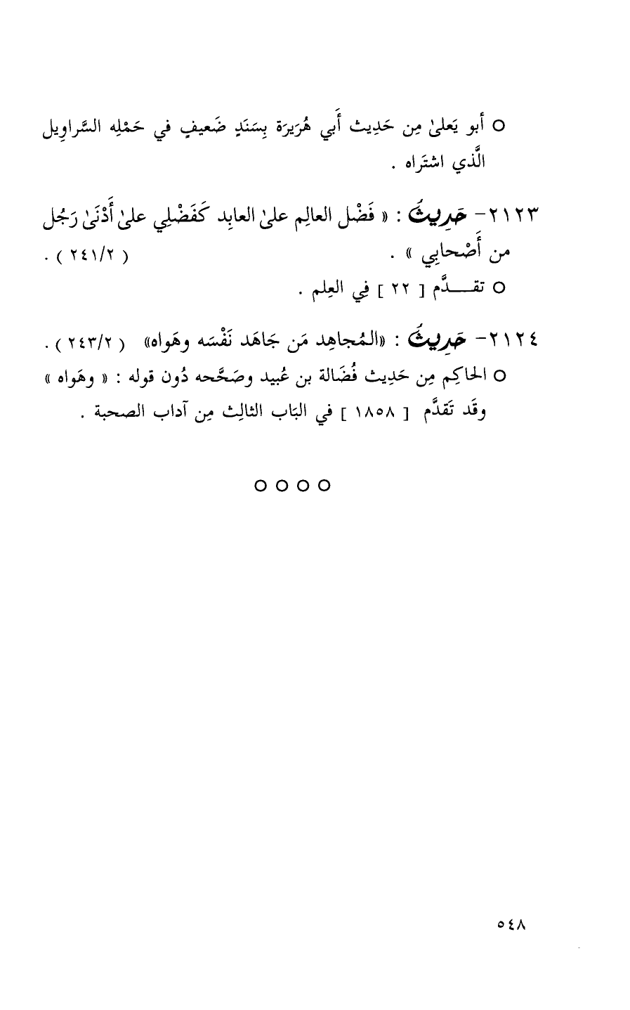 2123 حديث ( فضل العالم على العابد كفضلي على أدنى رجل من أصحابي ) ( 2 / 241 ) + تقدم 22 في العلم +