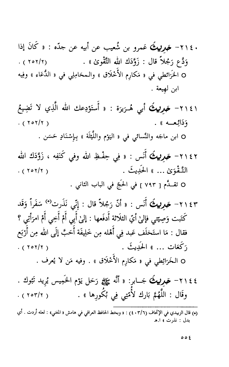 2140 حديث عمرو بن شعيب عن أبيه عن جده ( كان إذا ودع رجلاً قال زودك الله التقوى ) ( 2 / 252 ) (1)