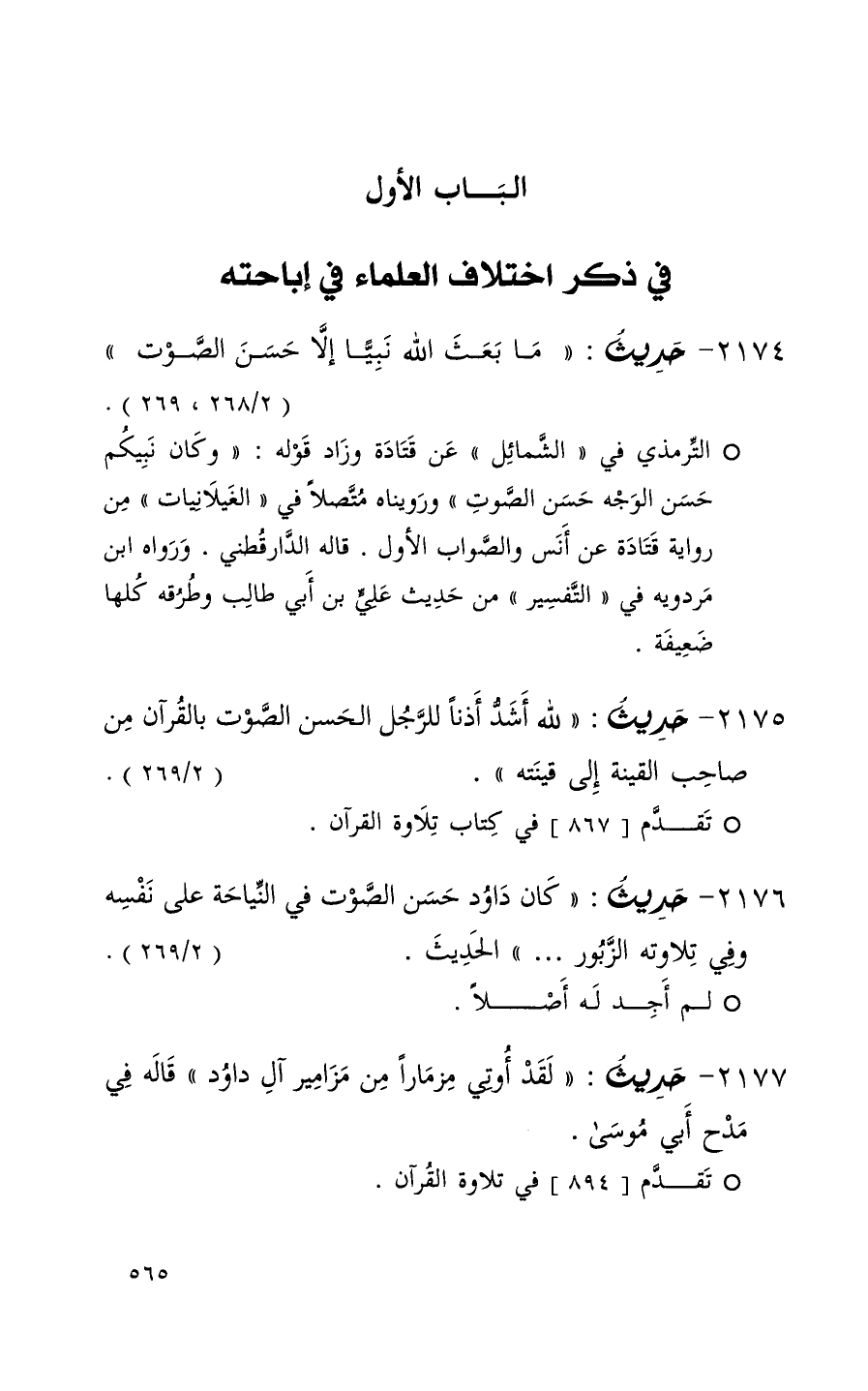 2174 حديث ( ما بعث الله نبياً إلا حسن الصوت ) ( 2 / 268ِ 269 ) (1)