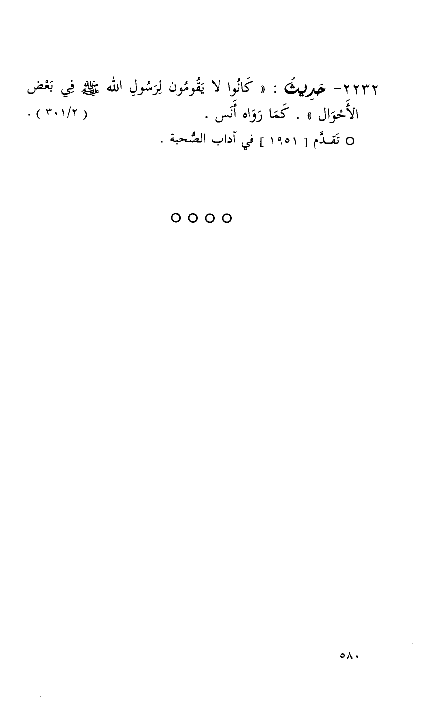 2232 حديث ( كانوا لا يقومون لرسول الله في بعض الأحوال ) كما رواه أنس ( 2 / 301 ) (1)
