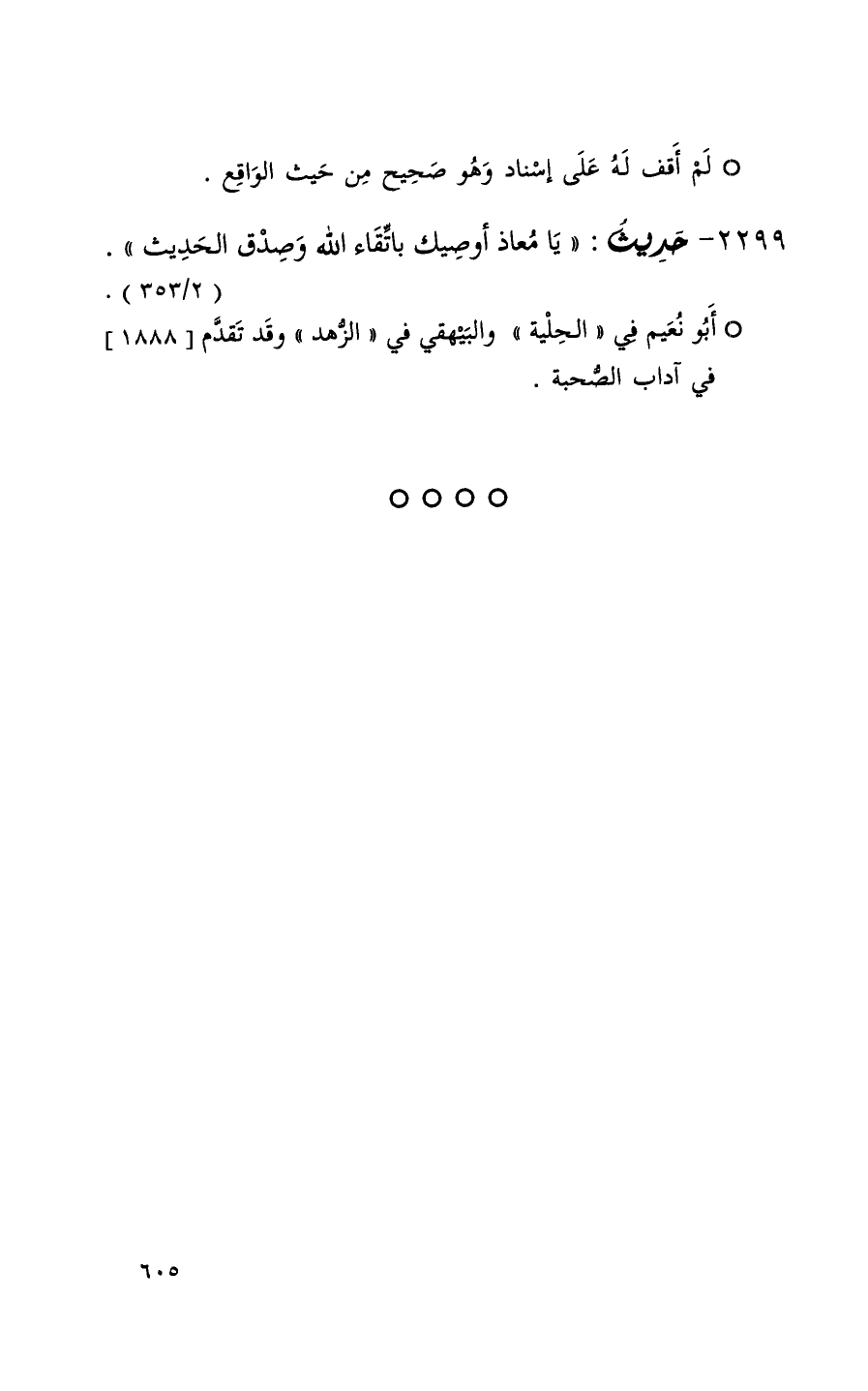 2299 حديث ( يا معاذ أوصيك باتقاء الله وصدق الحديث ) ( 2 / 353 ) + أبو نعيم في الحلية و البيهقي في الزهد وقد تقدم 1888 في آداب الصحبة +