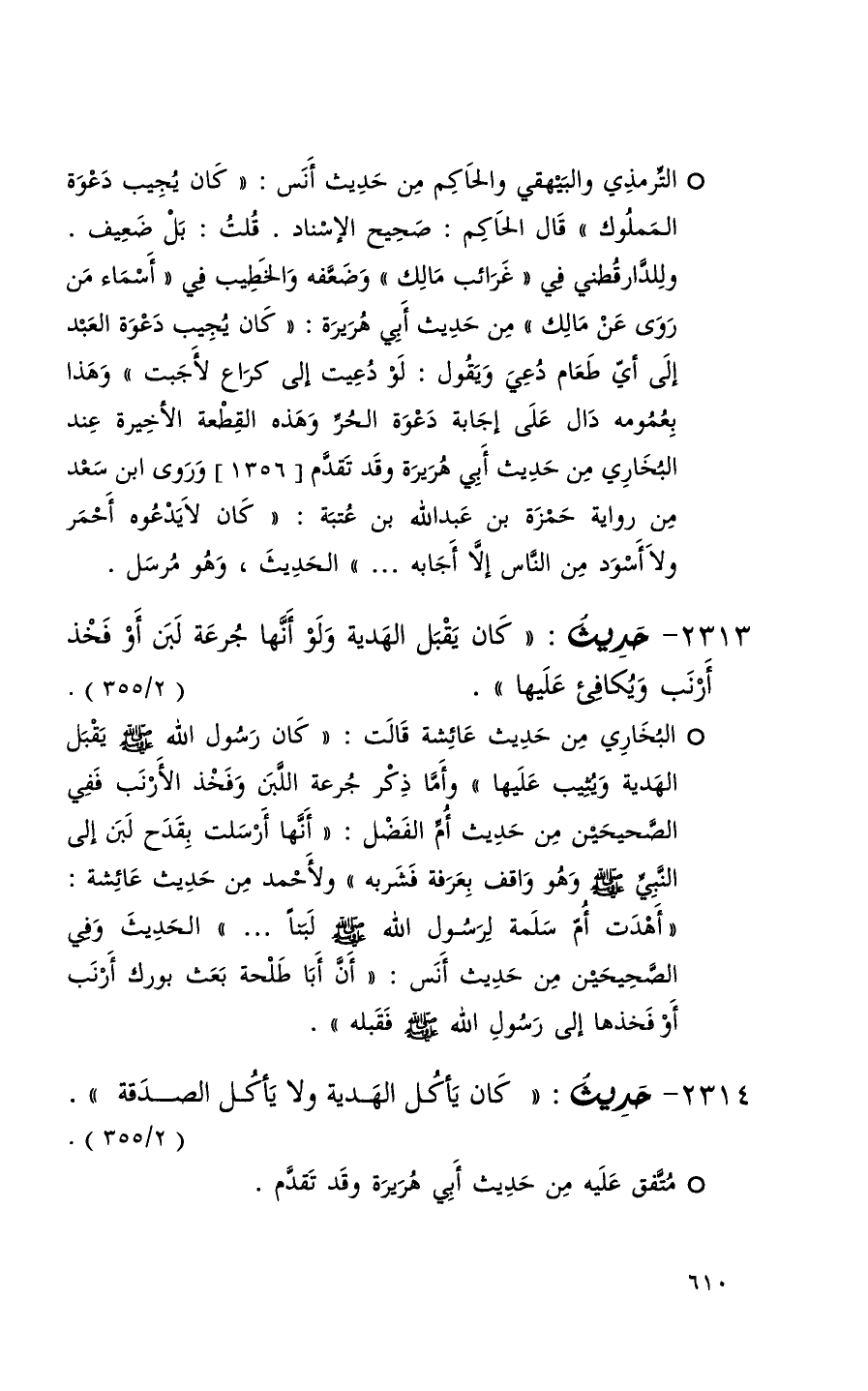 2314 حديث ( كان يأكل الهدية ولا يأكل الصدقة ) ( 2 / 355 ) + متفق عليه من حديث أبي هريرة وقد تقدم +