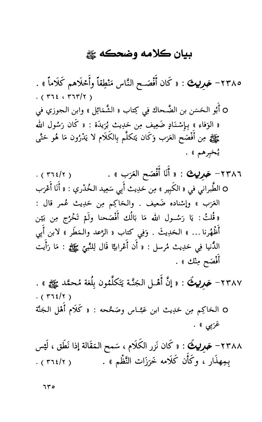 بيان كلامه وضحكه 32385 حديث ( كان أفصح الناس منطقاً وأحلاهم كلاماً ) ( 2 / 36( 364 ) (1)