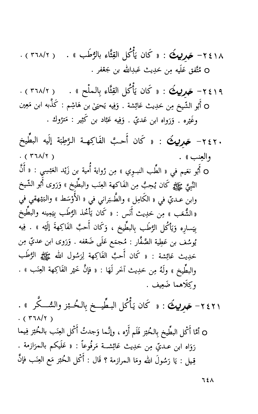 2418 حديث ( كان يأكل القثاء بالرطب ) ( 2 / 368 ) (1)