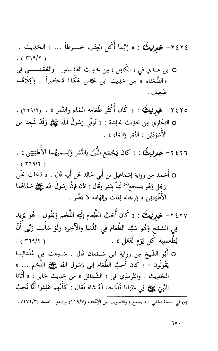 2424 حديث ( ربما أكل العنب خرطاً 000 ) الحديث ( 2 / 369 ) (1)