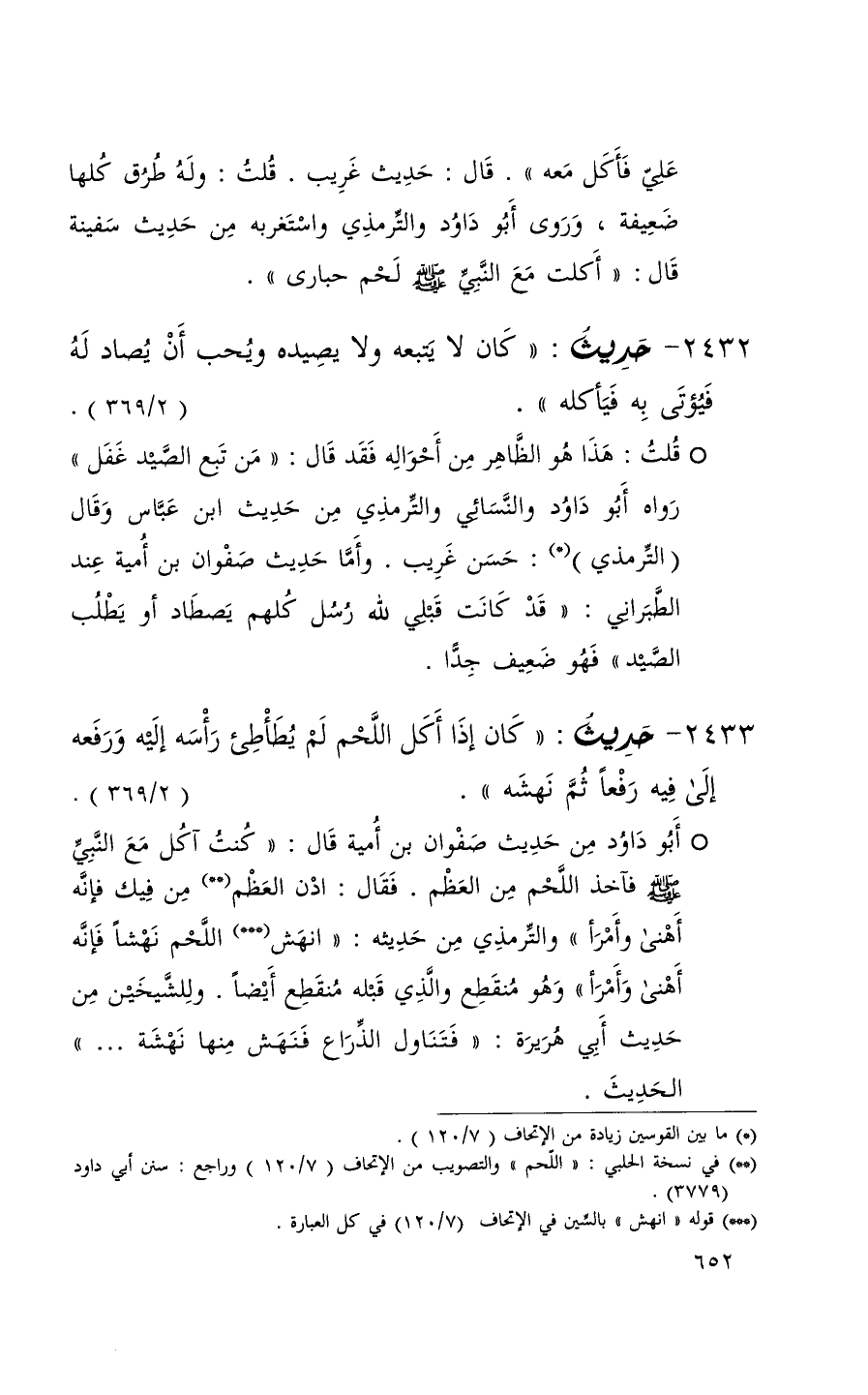2432 حديث ( كان لا يتبعه ولا يصيده ويحب أن يصاد له فيؤتى به في أكله ) ( 2 / 369 )
