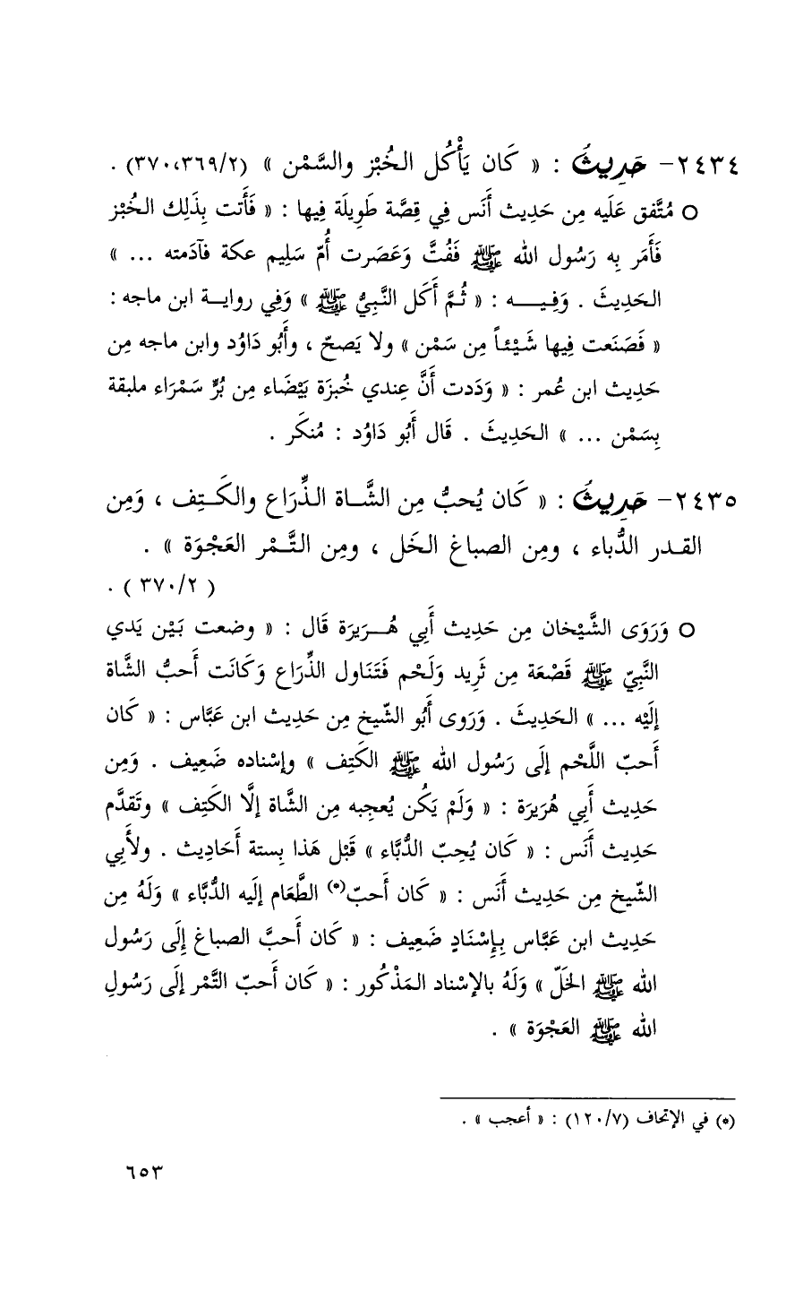 2434 حديث ( كان يأكل الخبز والسمن ) ( 2 / 369ِ 370 ) (1)