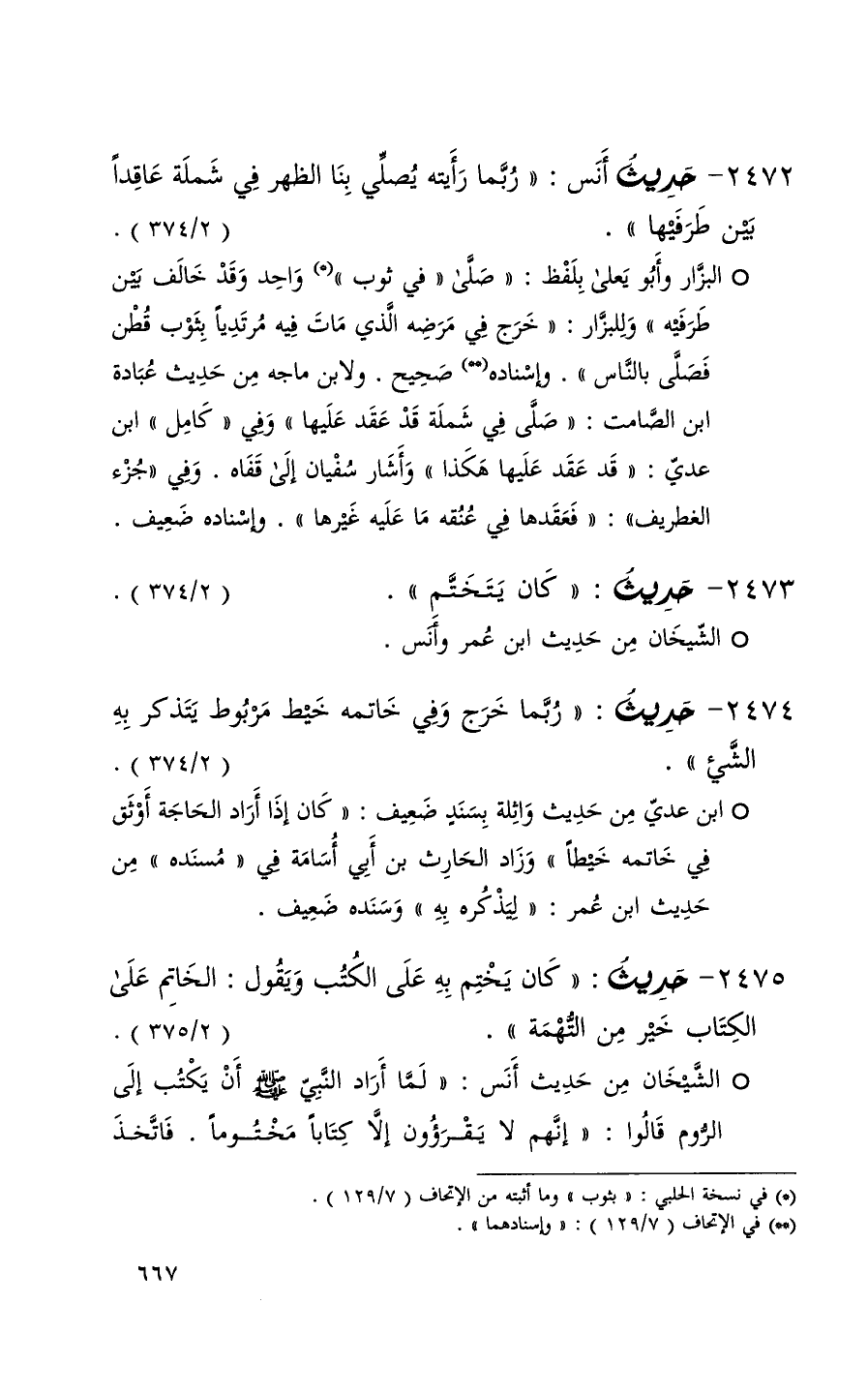 2472 حديث أنس ( ربما رأيته يصلي بنا الظهر في شملة عاقداً بين طرفيها ) ( 2 / 374 ) (1)