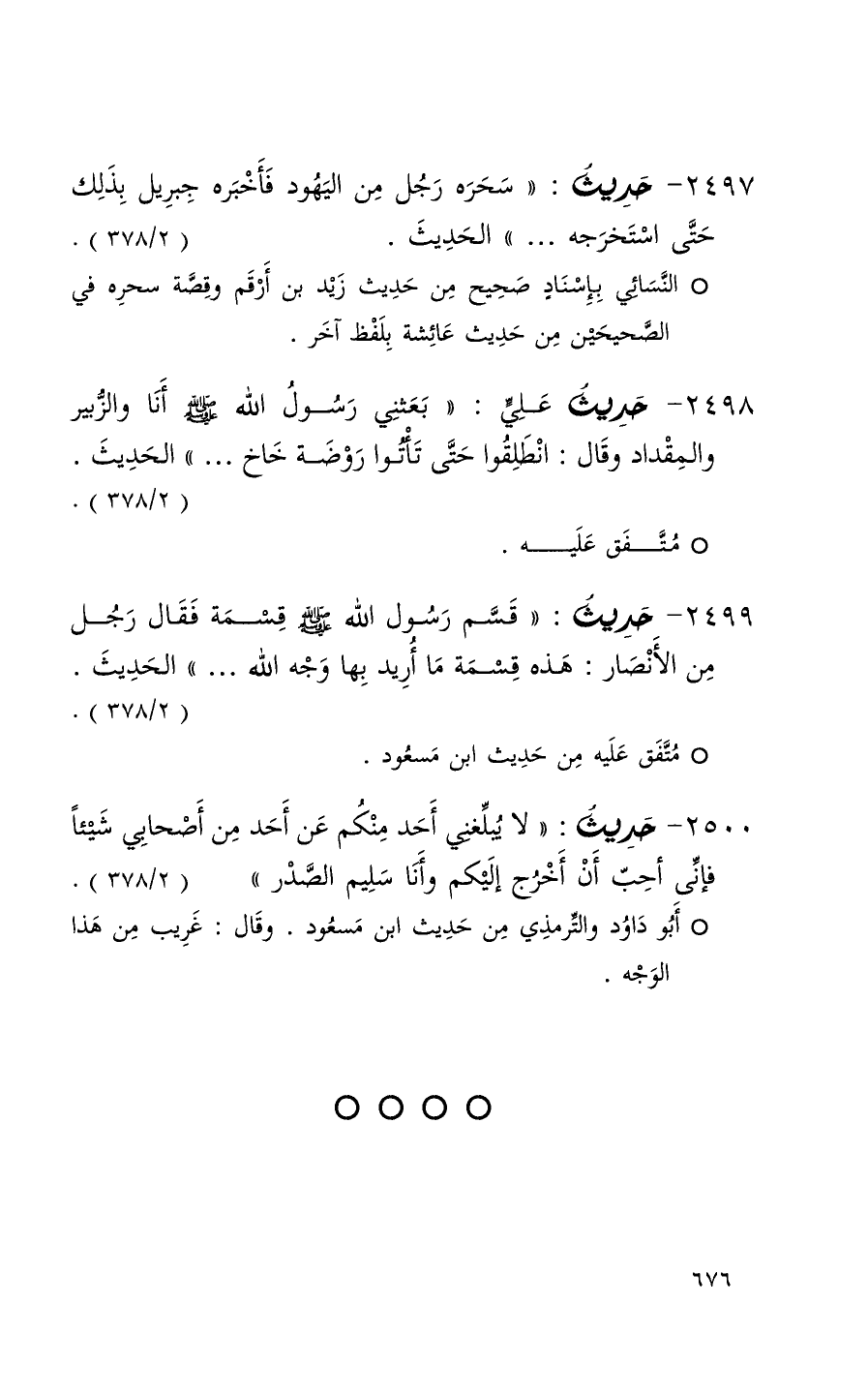 2500 حديث ( لا يبلإني أحد منكم عن أحد من أصحابي شيئاً فإنى أحب أن أخرج إليكم وأنا سليم الصدر ) ( 2 / 378 ) + أبو داود والترمذي من حديث ابن مسعود وقال غريب من هذا الوجه +