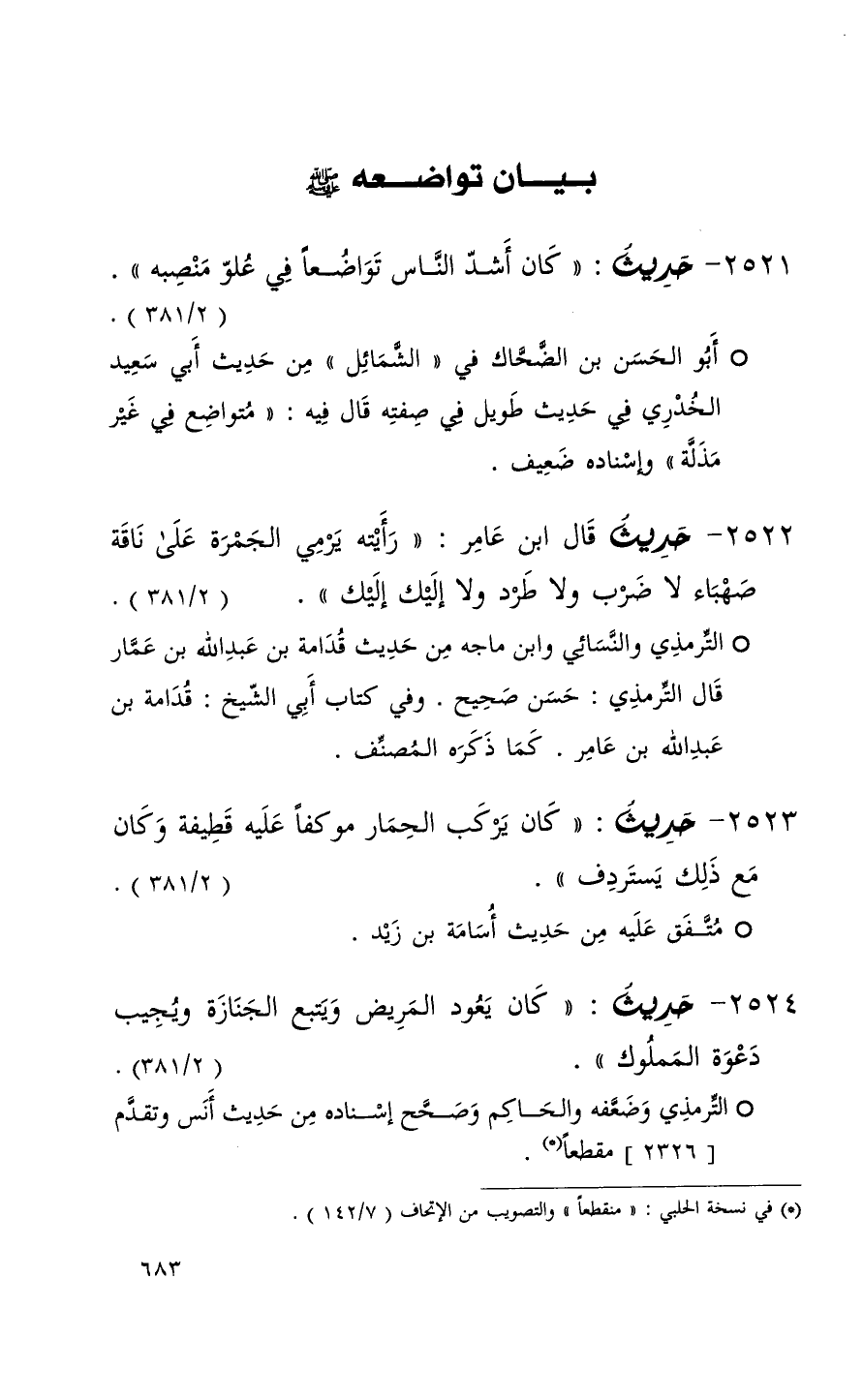 2521 حديث ( كان أشد الناس تواضعاً في علو منصبه ) ( 2 / 381 ) (1)