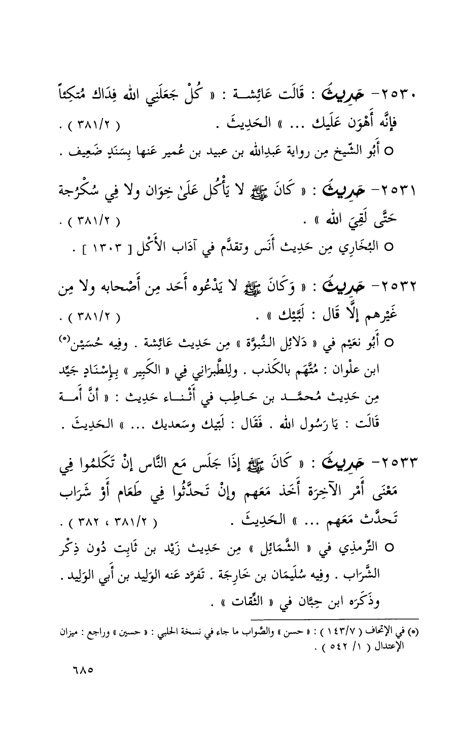 2530 حديث قالت عائشة ( كل جعلني الله فداك متكئاً فإنه أهون عليك 000 ) الحديث ( 2 / 381 ) (1)