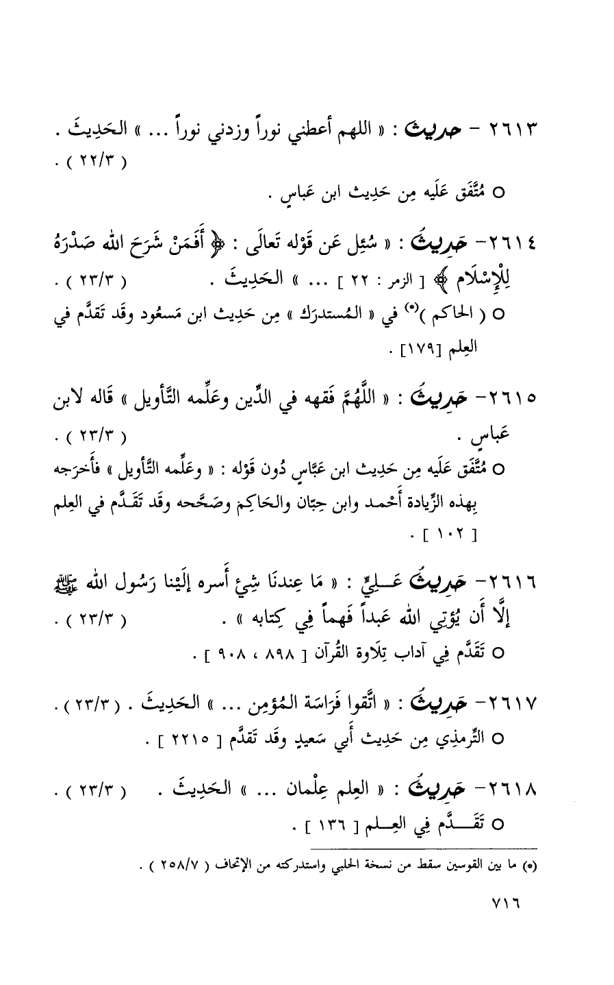2613 حديث ( اللهم أعطني نوراً وزدني نوراً . . . ) الحديث ( 3 / 22 ) (1)