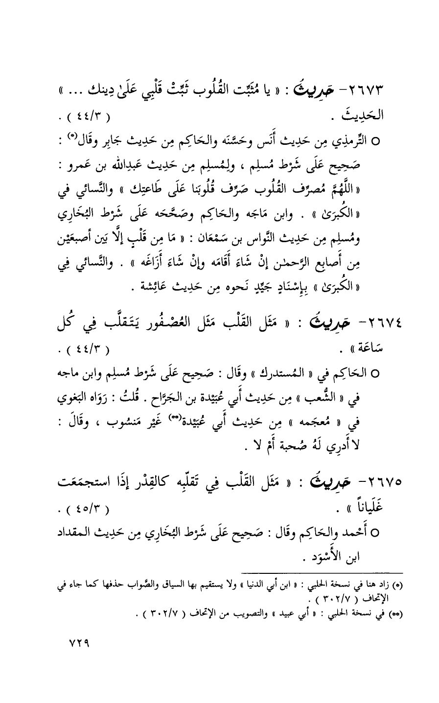 2673 حديث ( يا مثبت القلوب ثبت قلبي على دينك . . . ) الحديث ( 3 / 44 ) (1)