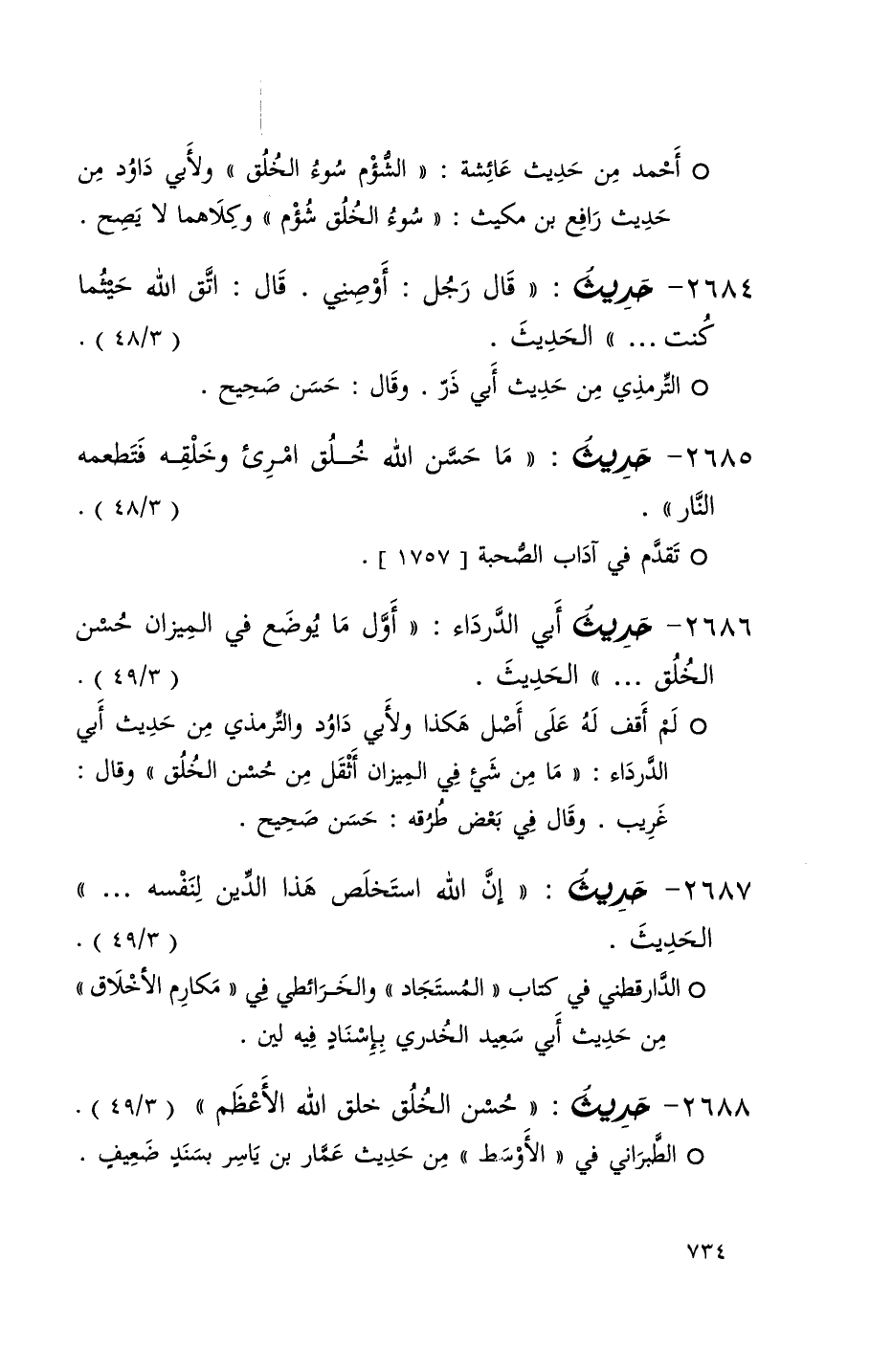 2685 حديث ( ما حسن الله خلق امرئ وخلقه فتطعمه النار ) ( 3 / 48 ) + تقدم في آداب الصحبة 1757 +