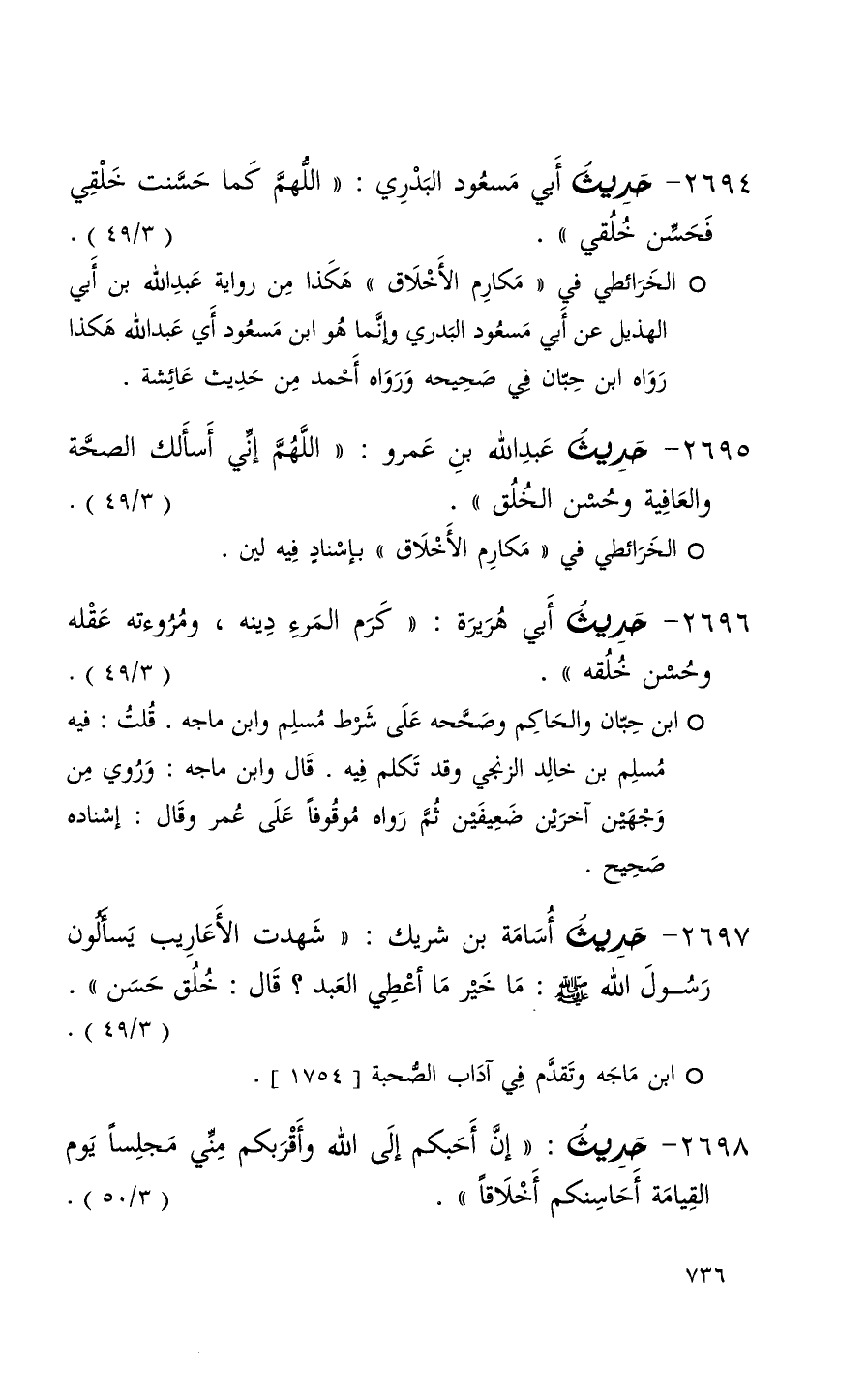 2694 حديث أبي مسعود البدري ( اللهم كما حسنت خلقي فحسن خلقي ) ( 3 / 49 ) (1)